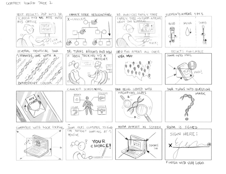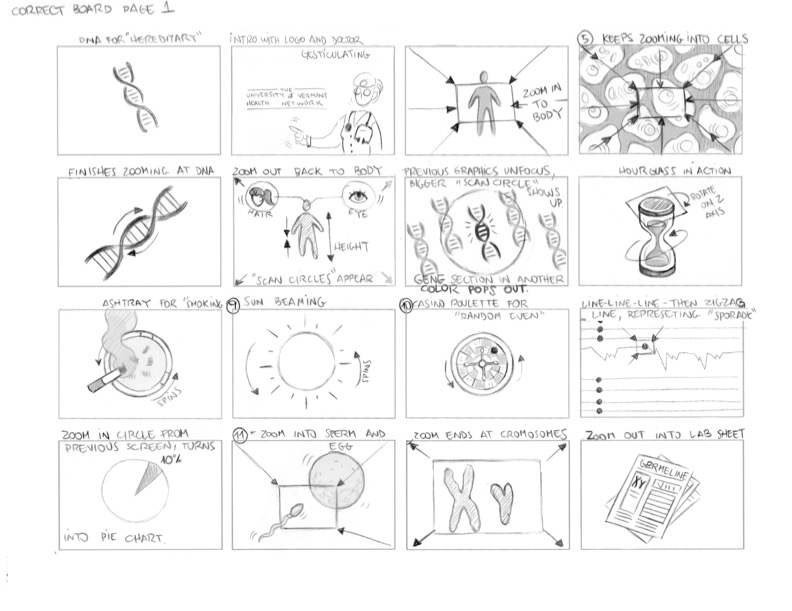 This animation, which I directed, storyboarded, illustrated, and animated, is presented to patients at the Vermont University Hospital Cancer Center to help them understand genetic counseling and testing.