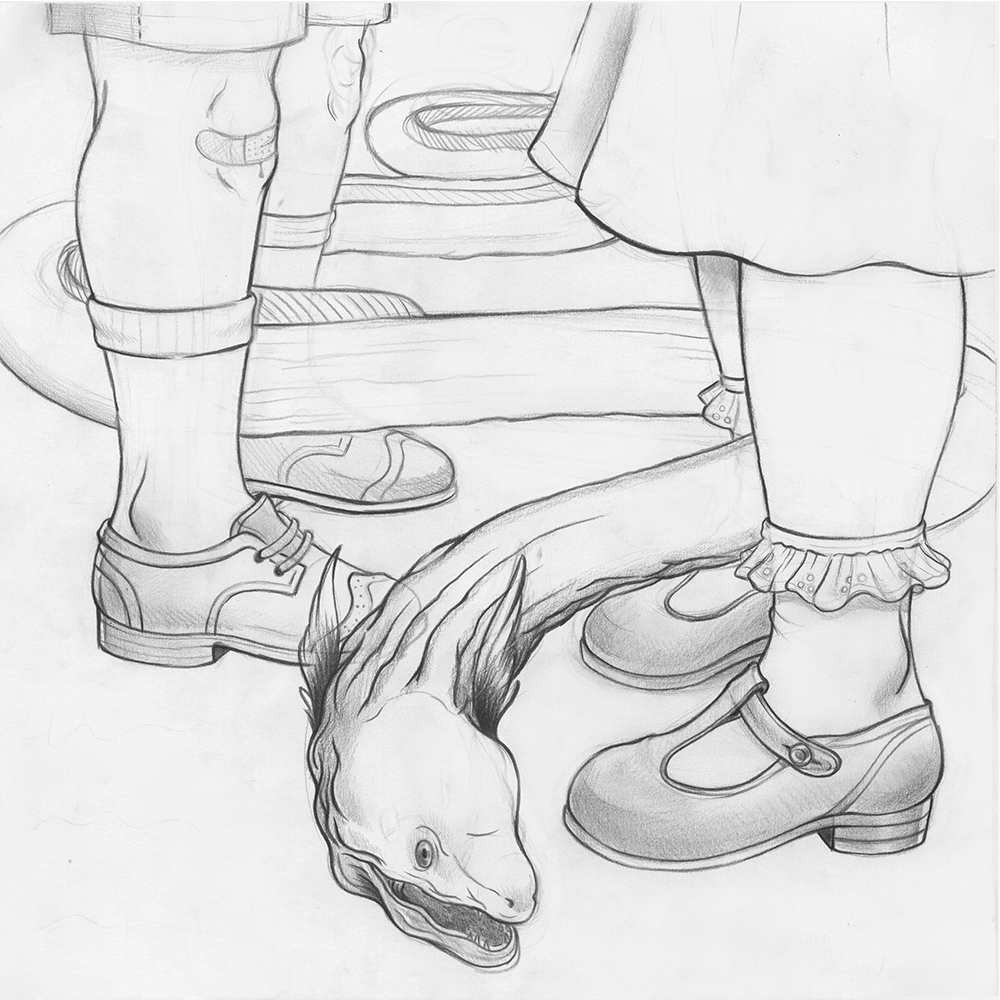 Based on Captain Beefheart’s “Beatle Bones ’n’ Smokin Stones,” this piece visualizes one of the song’s more cryptic lines. It treats the lyric as a scene rather than a metaphor, translating the words into concrete forms and color relationships.