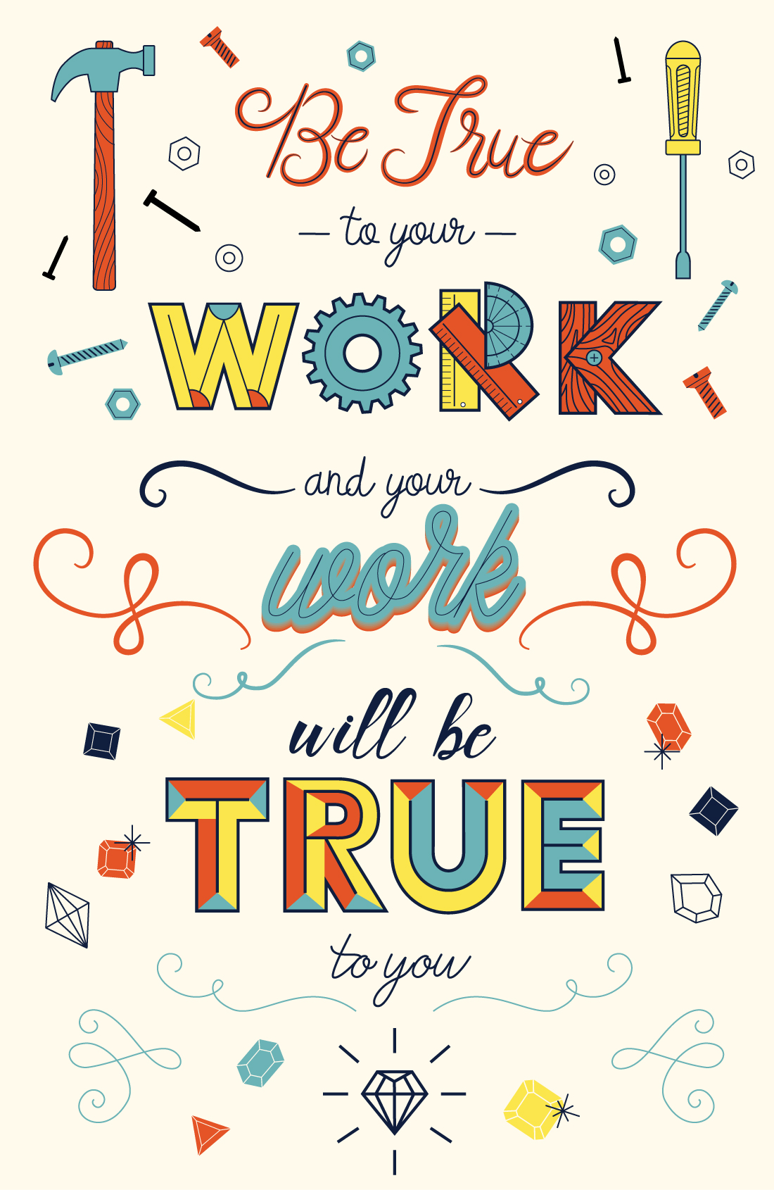 Poster inspired by Charles Pratt's quote "Be true to your work and your work will be true to you".