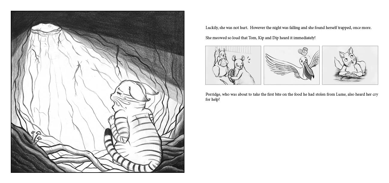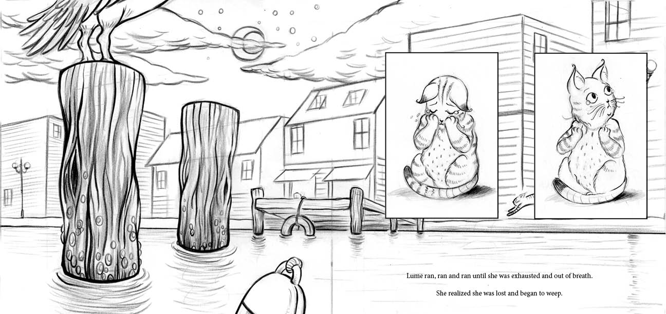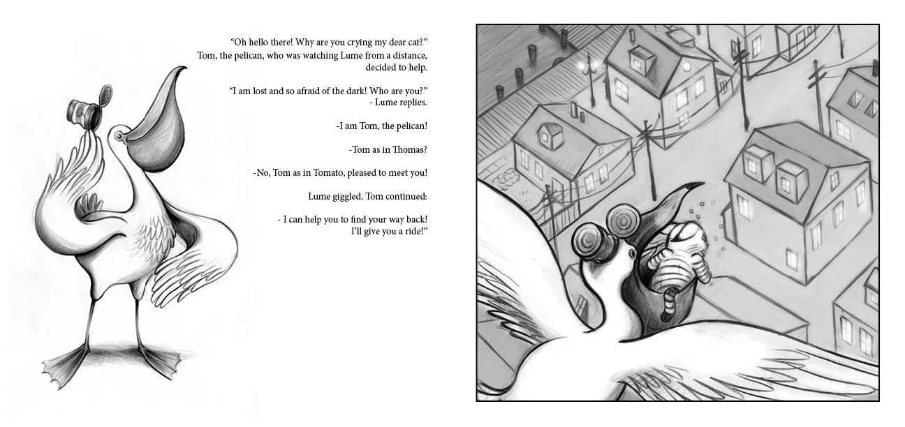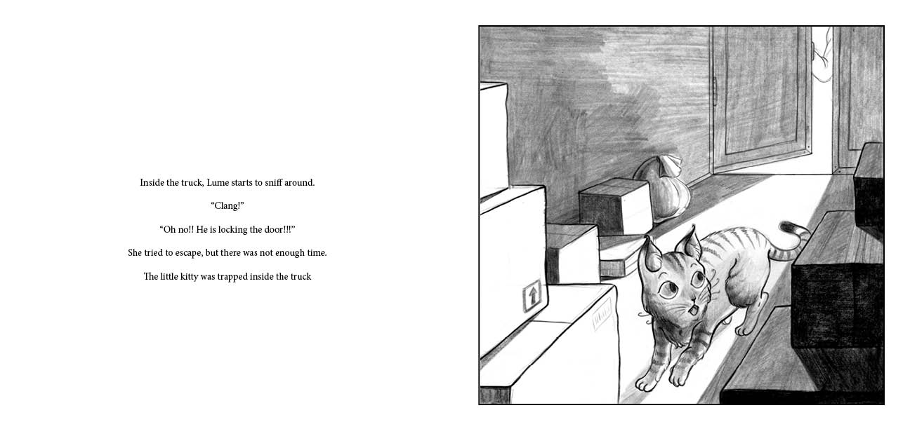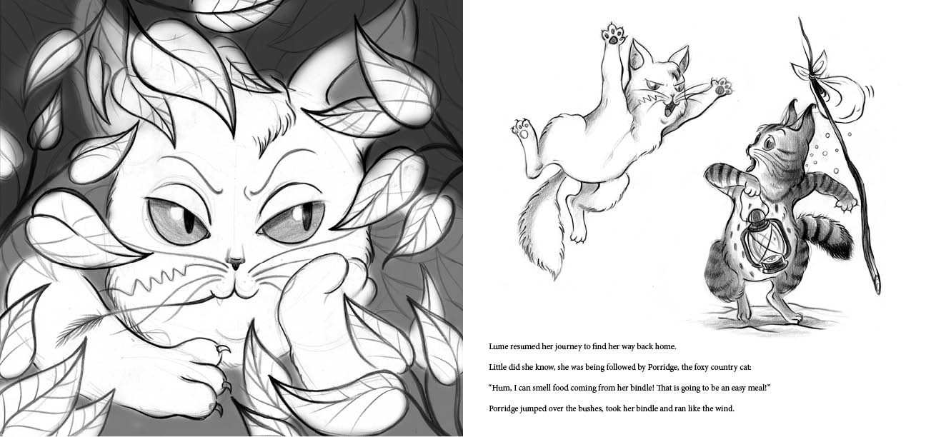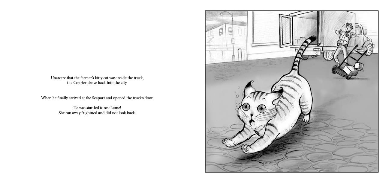 Lume, my first children's book, is written and illustrated by me. It tells the story of a laid-back countryside cat who accidentally gets lost from home.