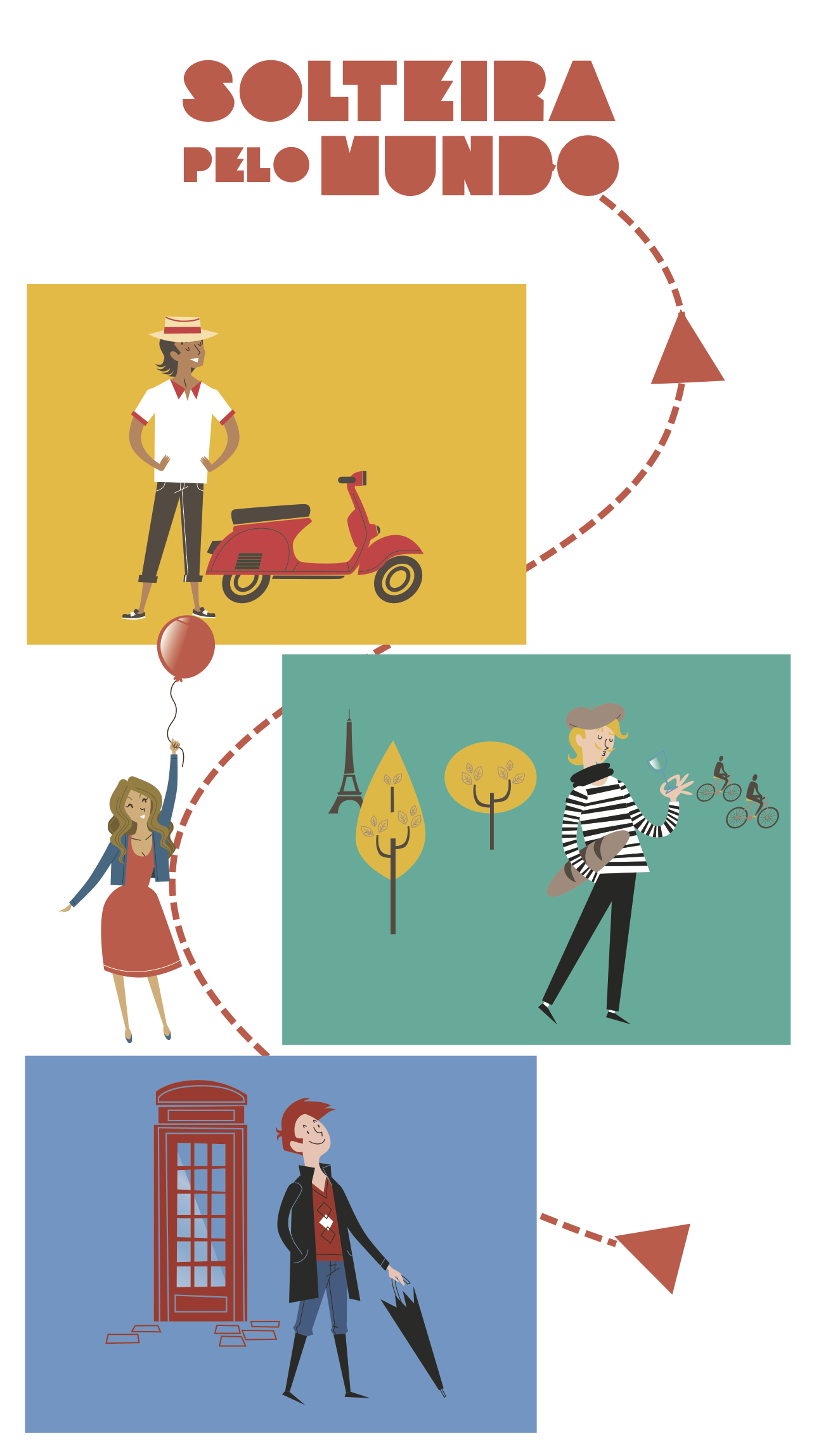 Show opening that I conceptualized, illustrated and animated for a web series called "Single around the World" aka "Solteira pelo Mundo", in portuguese, for the Brazilian television channel Multishow, Globo (formal Globosat).